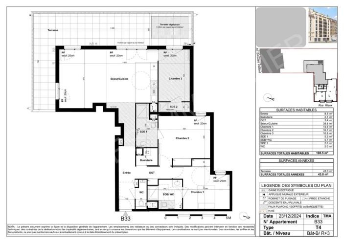 • Terrasse : 43 m²
